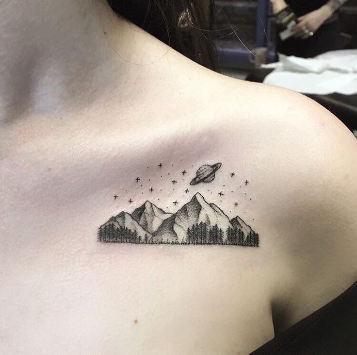 12. Горные татуировки ключицыВы, должно быть, видели много людей, делающих татуировки на ключице, потому что ключица очень интригует и может быть местом для вашей татуировки горы.