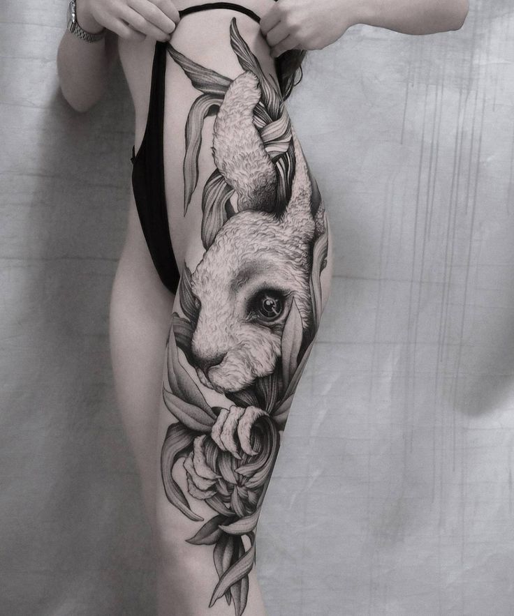 Вы не сможете регулярно показывать его до лета. Татуировки на бедре, с другой стороны, должны быть полностью посвящены дизайну.