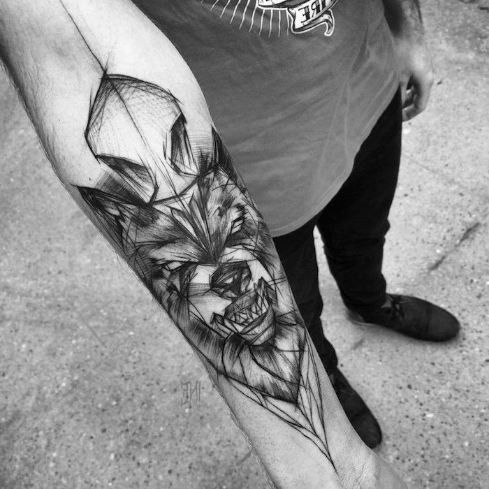 Тату в стиле графики, предплечье Графику ошибочно путают с черно-белым стилем. Для выполнения рисунка в стиле графика используются четкие контуры и контрастные цвета.