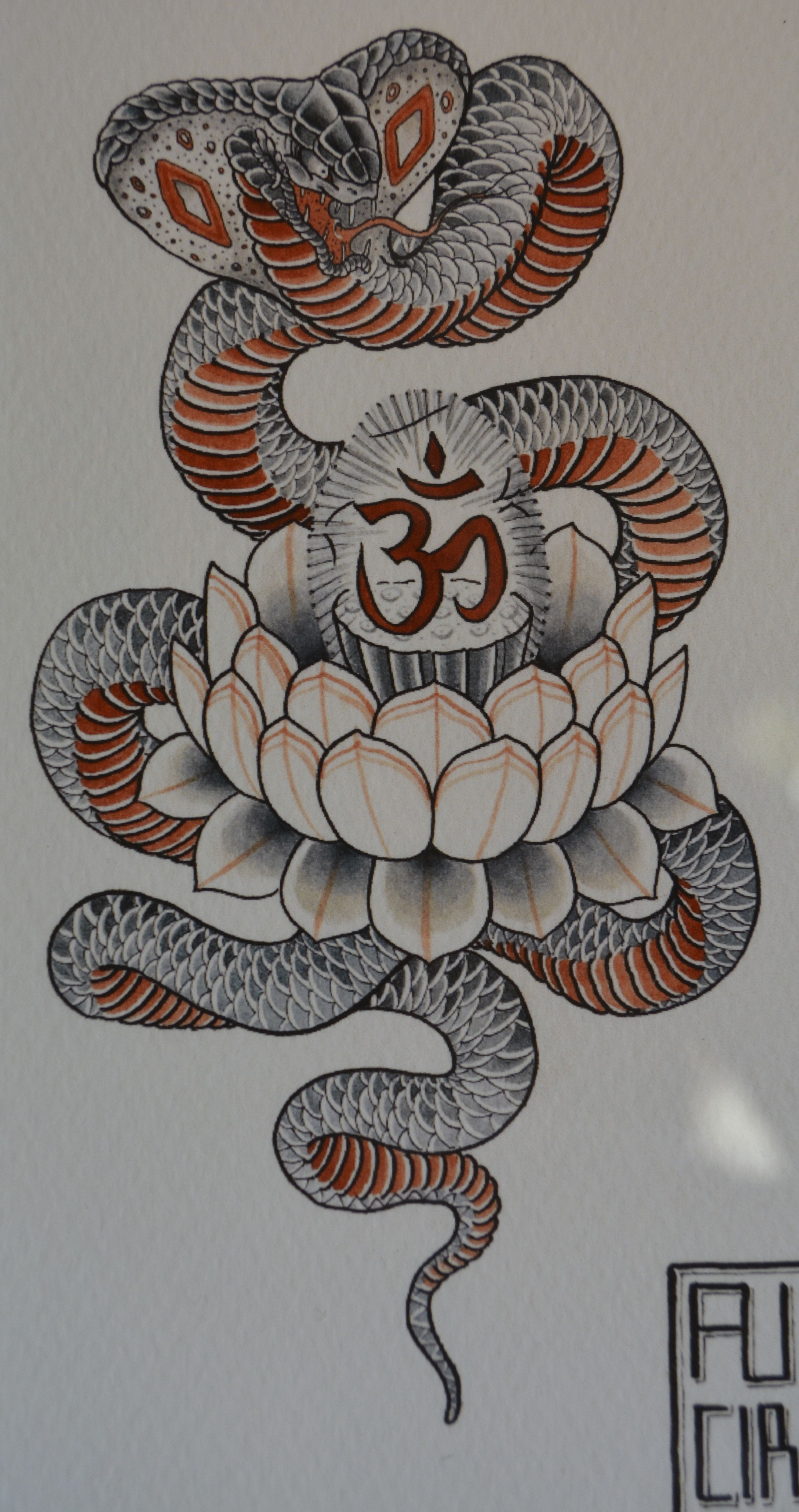 Еще в древнегреческой мифологии бог медицины Асклепий носил с собой яд змей и холодное оружие, чтобы вовремя оказать помощь нуждающимся. Кобра, которая обвивает стилет, олицетворяет излечение от тяжелой болезни, победу над трудностями, душевные переживания. Кинжал и змея – известный эскиз, но к его выбору стоит подходить осторожно.