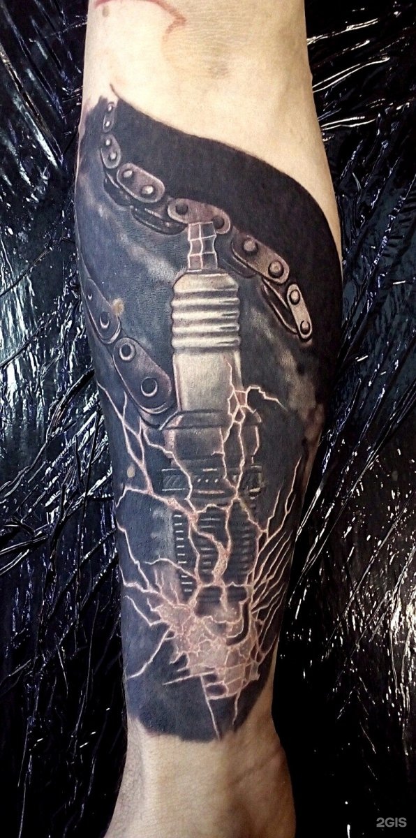Умница! После такого, можно смело не 8, а 12 часов высидеть. Кстати, удалось посмотреть(и не раз) как работает… Нет! Правильнее буде выразиться, создает Дмитрий «Хирург» -поверьте, это впечатляет! Человек полностью уходит в процесс с головой, после чего, его не остановишь! Здесь всё: и энтузиазм и творческий вкус и различные техники исполнения! Он глубоко чувствует то, что делает, понимаете?! Не сомневаясь доверила бы ему свои свободные части тела, но уже как-нибудь в другой раз))). В целом, я осталась довольна и тату и студией и коллективом и обстановкой. Слов мало… ТАТУ-СТУДИи “HiRuRg” мои наилучшие пожелания в Новом постапокалипсисном году! Ребята, нескончаемых Вам клиентов, процветания и развития, а так же, непроходящей гордости и огромного удовольствия от качественно выполненных работ! Держите МАРКУ! Передавайте привет «Гиене».С нетерпением буду ждать ее в гости, для дальнейшей доработки начатого тату. Эх, еще бы парочку сеансов, ведь нет предела совершенству!
