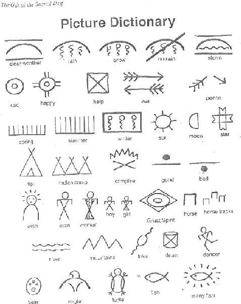 Варьируя от племени к племени, иногда бывает трудно понять их значение, в то время как другие символы очень ясны. Из-за того, что индейские племена говорят на нескольких языках , символы или «рисование картинок» часто использовались для передачи слов и идей. Символы также использовались для украшения домов, были нарисованы на шкурах буйвола и фиксировали важные события племени.
