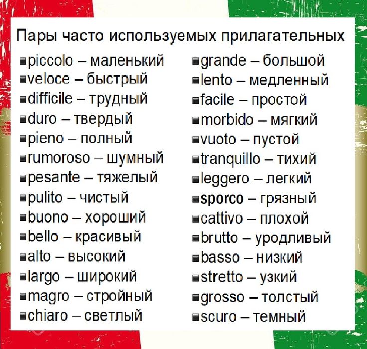 В этом разделе мы собрали для Вас итальянские слова с переводом по различным темам. Пополните свой словарный запас новыми словами на итальянском языке или освежите их в памяти.