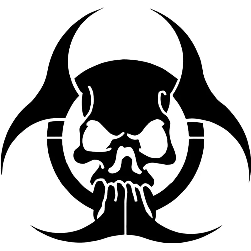 Это светло-серые череп и кости. На нём изображаются две большие черные глазницы, дыра в форме сердца, два ряда белых зубов и скрещённые кости 🦴 . Означает смерть и опасность ⚠. Можно скомбинироваться с жидкостью 💧 ☠ 🍺 или с чёрным флагом 🏴.