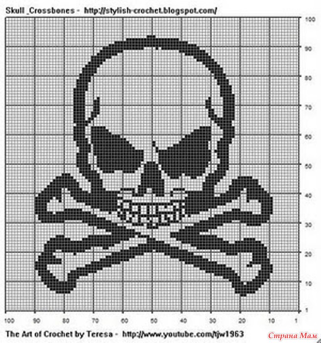 Википедия: ☠ Адамова голова (символ)Ада́мова глава́ (Ада́мова голова́), Мёртвая голова́ (нем. Totenkopf) — символическое изображение человеческого черепа с двумя крест-накрест лежащими костями. Является как символом смерти, так и бесстрашия перед её лицом. Как правило, изображается белым или серебряным цветом на чёрном фоне.