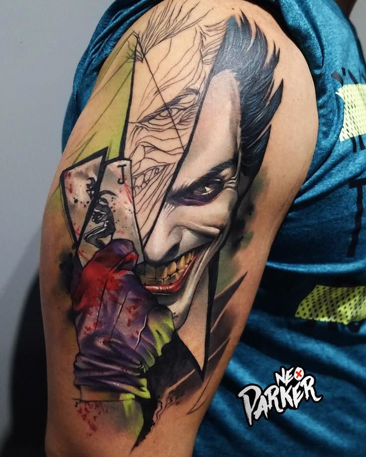 Значение тату джокера- Татуировку джокер набивают люди, желающие показать многогранность личности. Шут, который сначала плачет, а потом смеется, олицетворяет склонность человека менять настроение и адаптироваться к жизненным ситуациям.