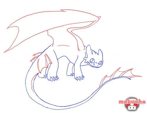Как рисовать Беззубика поэтапно (How to Train Your Dragon 2)Шаг 4.