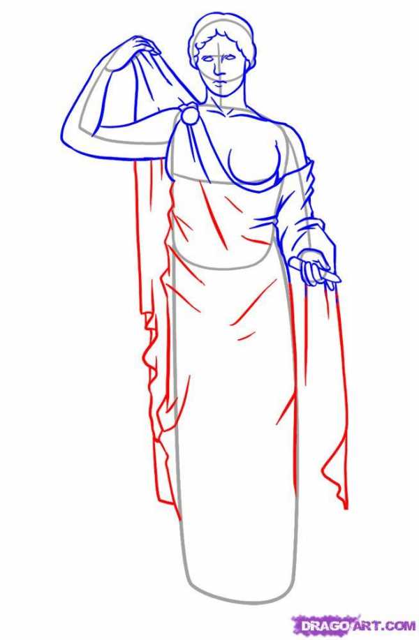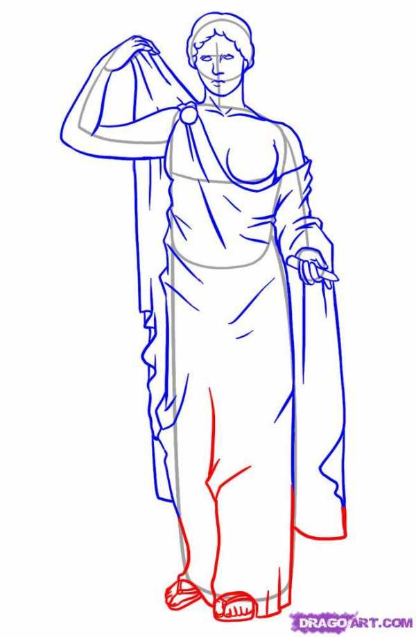 Теперь это ваш последний шаг рисунка и как вы можете видеть, все что вам нужно сделать, это наметить всю свою тогу, а затем нарисуйте ее ноги и сандалии.Знаете ли вы, что после второго века до нашей эры только мужчины носили тоги и женщины должны были носить stolas.Стереть руководящие принципы и формы, которые вы нарисовали на первом этапе.