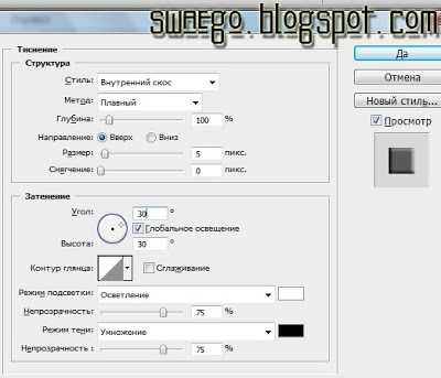 Сливаем слои с кистями вместе Ctrl+E.Теперь применяем стили слоя,2 клика по слою и параметры наложения-Тиснение.