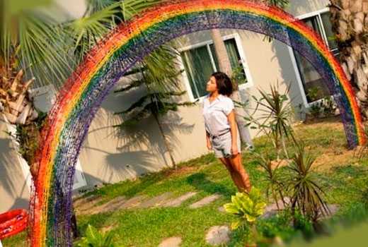 Колючая проволока – материал распространенный. Используется он, в основном, для недорогих ограждений земельных участков. Но из него также можно создать оригинальное украшение для сада. Например, в виде арки-радуги.