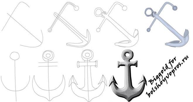 Рисование якоря. Как нарисовать якорь шаг за шагом