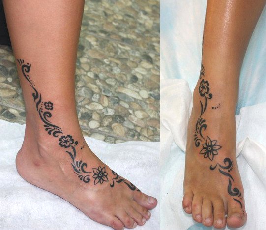 Но тату на ноге мужские, например, чаще всего встречаются только на голени или, вообще, по всей поверхности ноги. Среди женщин ещё со времён популяризации татуировок стали распространёнными изображения браслетов в виде витиеватых линий, специфических узоров, бусин и цепочек. Сегодня они отличаются и стилем, и различными дополнениями.
