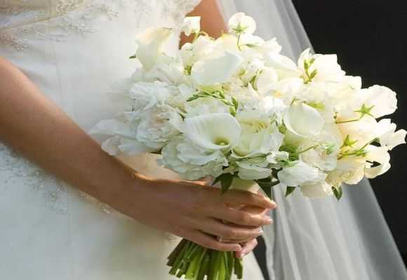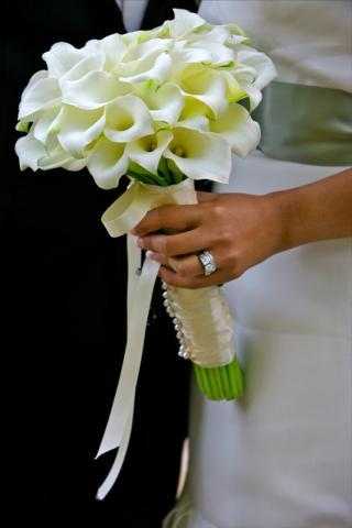 Белоснежные каллы отлично украшают свадебный букет. Мягкость цветка волшебно гармонирует с белым платьем невесты, а точность форм добавляет всему образу невесты важность, даже определенную вдохновленность, подходящему моменту.