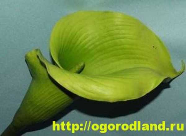 Если вы посадили каллу и ждете первые цветы, то пусть вас не удивляет то что первый цветок будет зеленого цвета, у этих цветов первый цветок всегда имеет зеленый окрас.
