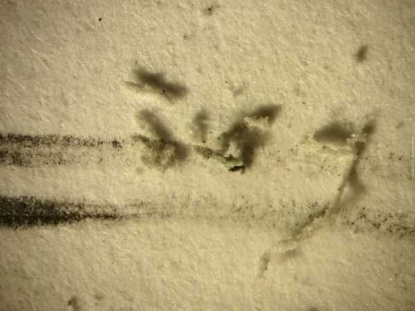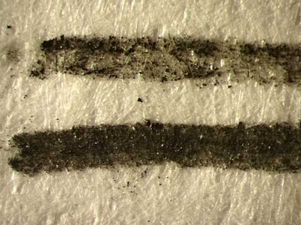 Как известно, карандаши различаются твердостью. На рисунке ниже след от карандаша средней твердости ТМ (сверху) и самого мягкого 2М (снизу).
