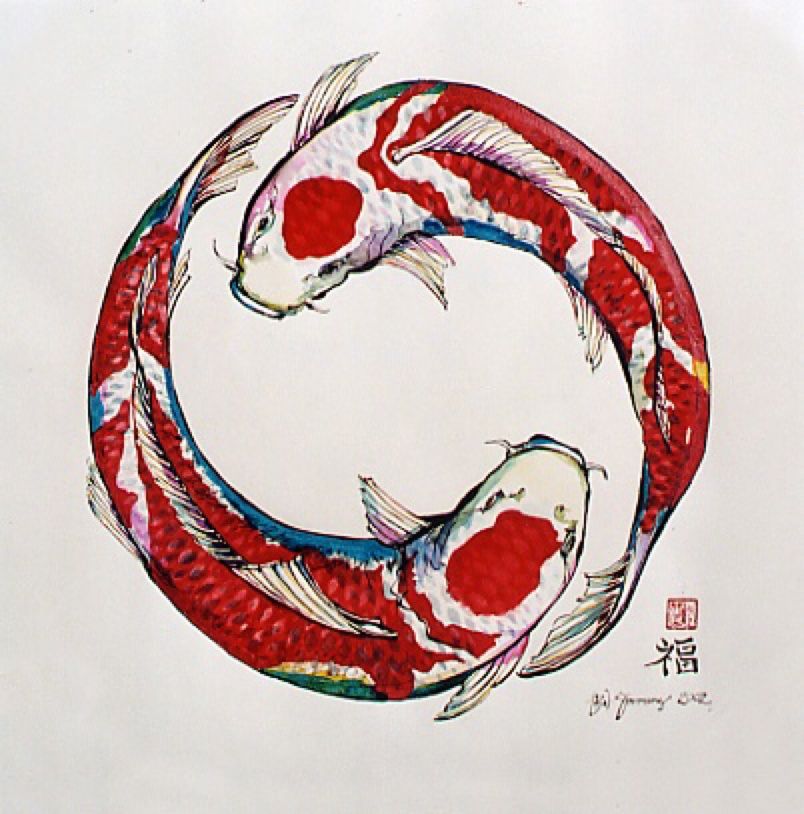 Фигурки двух рыб — элитные карпы кои и рыбы арована — часто встречаются в модном веянии фен-шуй. Считается, что изображение этих рыб в паре приносит богатство и любовь.