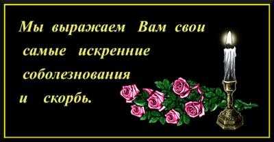“Мы выражаем Вам свои самые искренние соболезнования и скорбь.” Картинка со свечой, букетом роз и словами скорби.Больше… В избранное