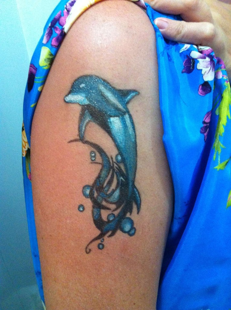 Отзыв: Недавно у меня появилась долгожданная татуировка дельфин. Эскизы уже были выложены на странице в социальной сети. Как только заполню краской саму татуировку (пока есть только черный контур), обязательно похвастаюсь.