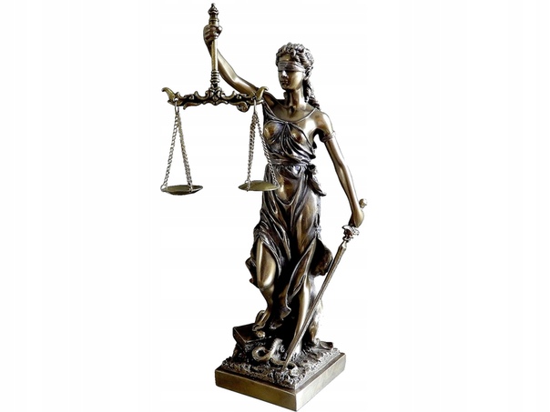 Весы – древний символ меры и справедливости. На весах правосудия Фемида взвешивает добро и зло, вину и невиновность. Весы должны находиться в левой руке богини – со стороны сердца, потому что именно эта сторона тела считается более восприимчивой. Меч в руке Фемиды – символ возмездия. Классическая Фемида держит меч острием вверх, что указывает на “волю небес”, высшую справедливость, а также на постоянную готовность его применения.