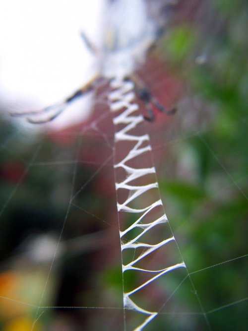 Как говорила некая Мисс Энистон (Miss Aniston), это целая наука. Структуры выглядят как украшения паутины, но научное их название – стабилиментум (stabilimentum). Во множественном числе они известны как стабилиментумы, и это название появилось в результате ошибки. Когда впервые стали изучали эти «украшения», считалось, что они используются для стабилизации паутины паука – и поэтому «стабилиментум» – понимаете? Однако, сейчас эту теорию полностью отвергают, хотя для всех очевидно, почему раньше ученые так думали.