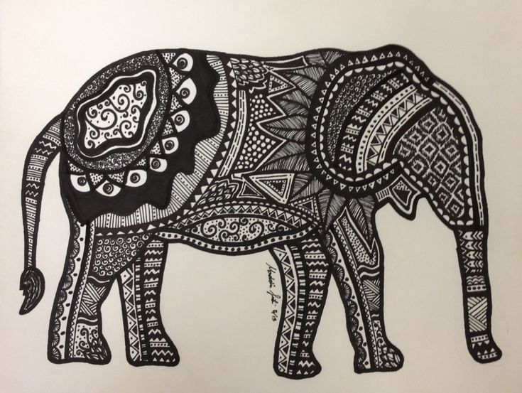 Не обойтись в индийских орнаментах и без рисунка слона. Узор означает долголетие, процветание и терпение, свободу. Жители Индии свято верят, что изображение слона поможет достичь успеха и исполнить все самые сокровенные мечты.