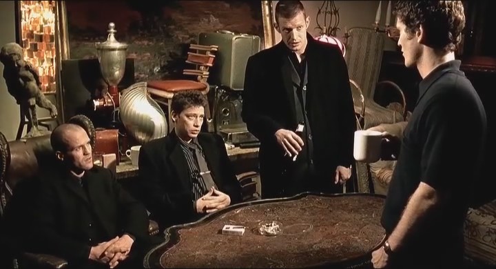 В криминальном боевике «Карты, деньги, два ствола» актеры исполняли роли нескольких группировок персонажей: главных героев, соседей-наркодилеров, приспешников Гарри Топора, бандитов мистера Ломщика и многих других. Каждая группировка действовала по-своему, преследовала собственные цели, и каждая имела свою, развивающуюся параллельно основной сюжетную линию.