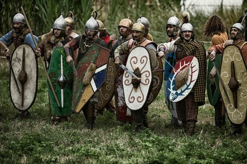 große schlacht zwischen mittelalterlicher krieger. миттельальтерлихен реконструкция. – кельтские древние народы стоковые фото и фотографииGroße Schlacht zwischen mittelalterlicher Krieger….