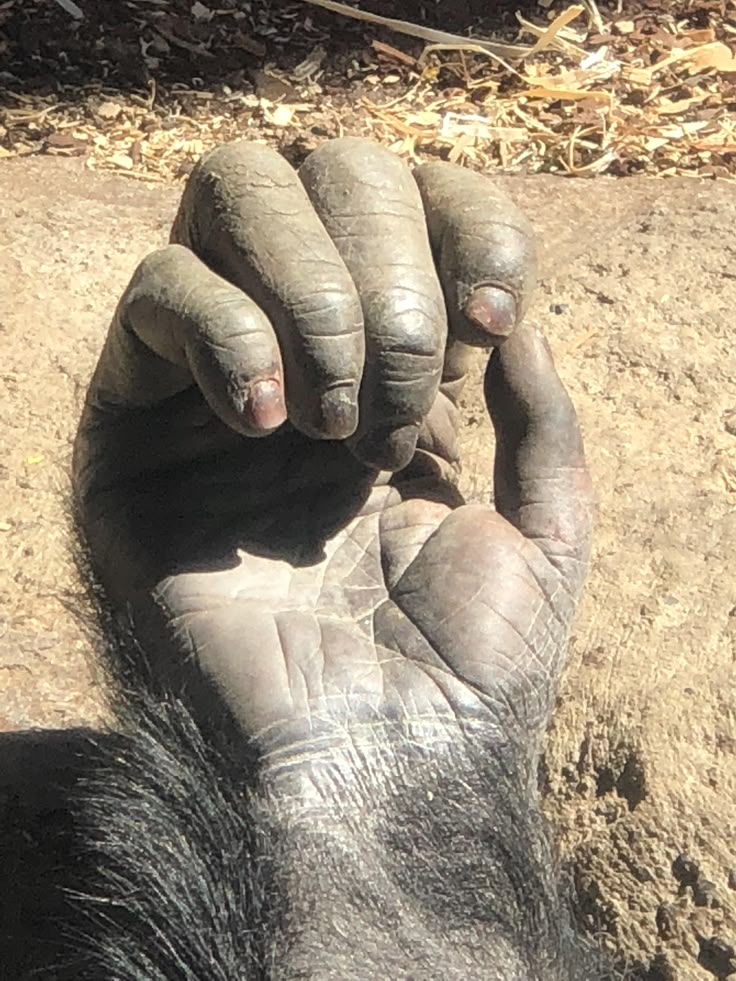 время пальцы шимпанзе более длинные, тогда как большой палец короткий и