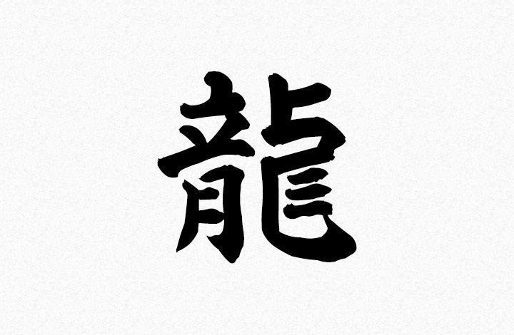 Древняя форма письма печати для иероглифа «дракон», который теперь пишется 龍 или 龙 и произносится как длинный на китайском языке.