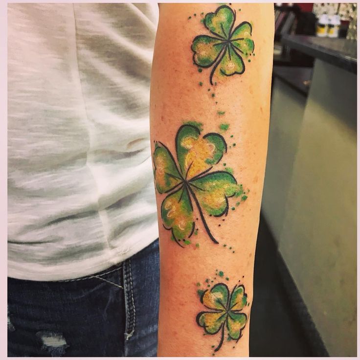Если вы окончательно определились с цветом, размером, стилем и другими деталями, остаётся только выбрать, где она должна располагаться. Вариантов несколько. Хорошо будет смотреться клевер на руке, плече, предплечье.