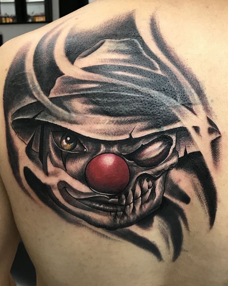 Сегодня татуировки злых клоунов в моде, потому что они вселяют больше, чем страх в людей, которые, возможно, уже испытывают трепет перед клоунами.