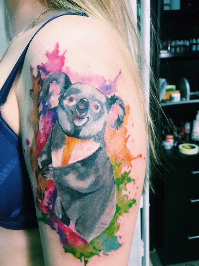 Татуировку коала выбирают заядлые домоседы, которые любят почитать книгу в тишине или посмотреть фильм в уютной обстановке. Медведь воздействует на них расслабляющее, делает их еще более ленивыми и менее склонными к уговорам покинуть жилище и прогуляться.
