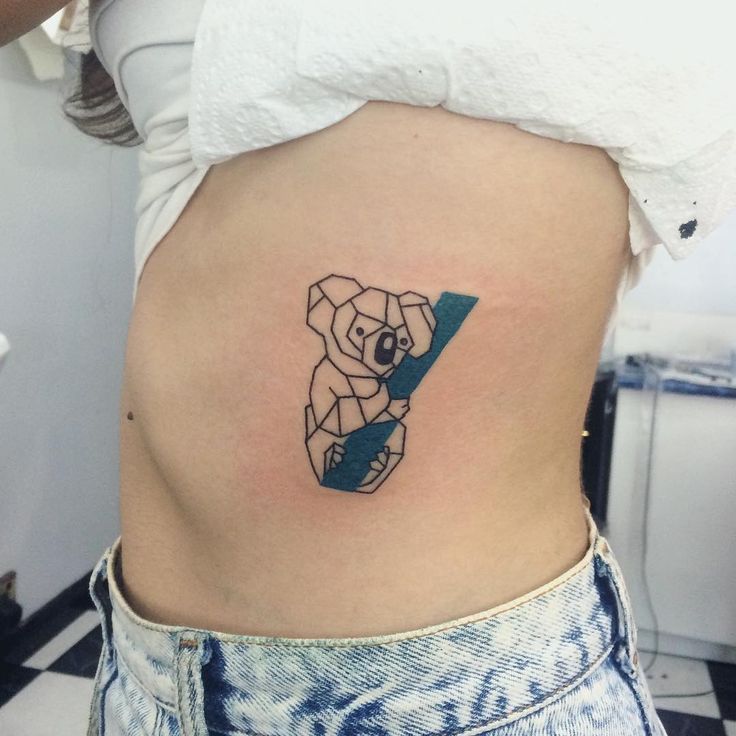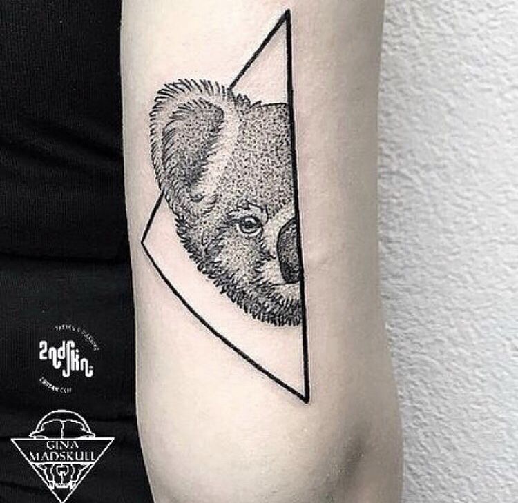 Значение: Геометрические татуировки включают в себя несколько линий и структурных форм, которые объединяются вместе, образуя татуировку большого размера. В приведенной выше татуировке лицо коалы выполнено геометрическими фигурами. Эта татуировка означает творчество, интуицию, страсть, доверие и мудрость.