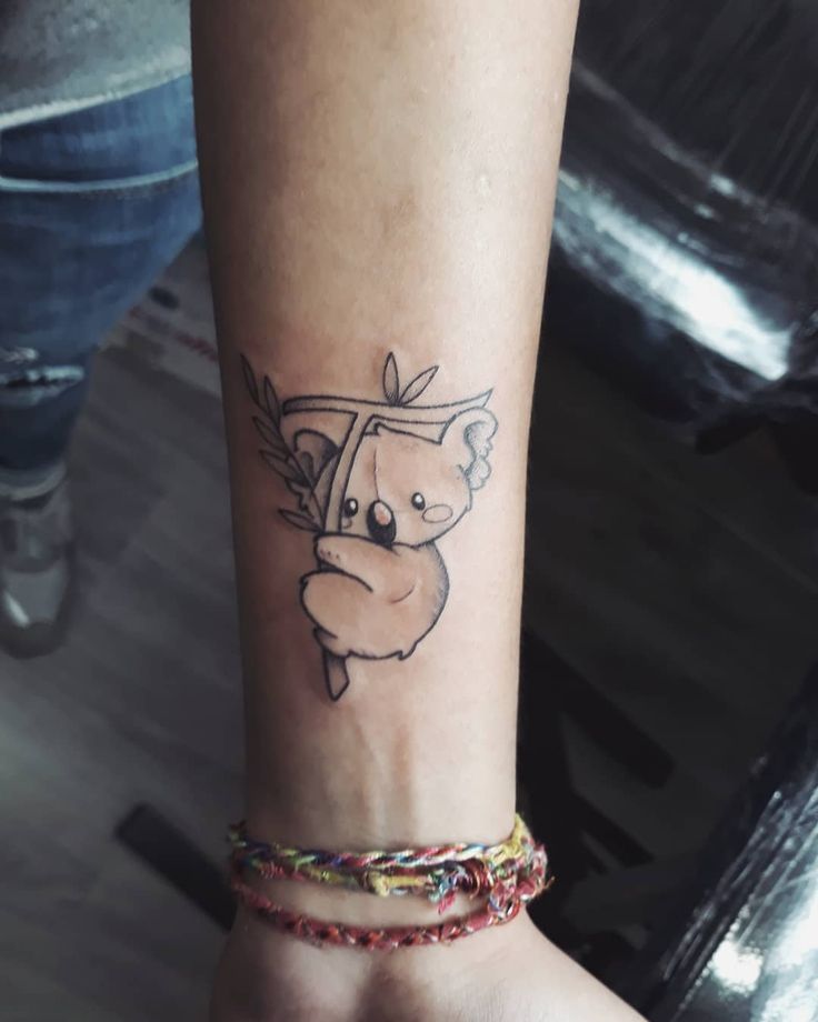 На приведенной выше татуировке коала сделана коричневыми чернилами. Эта татуировка означает творчество, безопасность, уверенность, доброту и доверие. Он изображает характер владельца, который может быть творческим, уверенным, добрым и заслуживающим доверия.