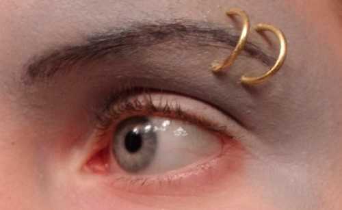 Пирсинг-обманка на бровях – способ крепления идентичен предыдущим. Вы можете закрепить кольцо на брови с помощью специального незамкнутого строения украшения, либо приклеить миниатюрные аксессуары с помощью клея.