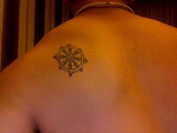 Татуировка с колесом Дхармы заимствована из множества буддийских форм, а центром колеса может быть лотос или, как обычно, пупок.