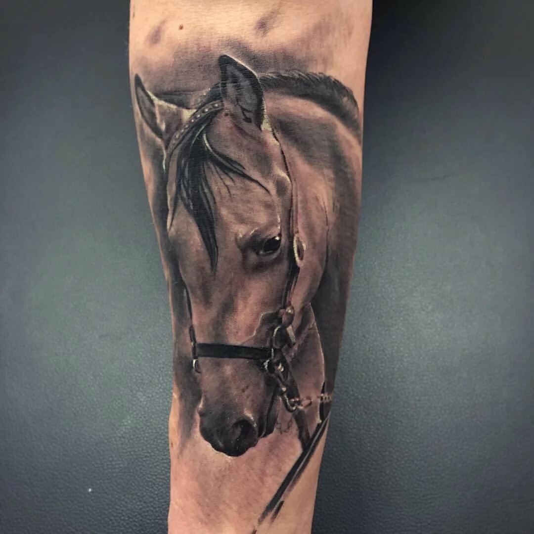 Это великолепное животное заслуживает одной из самых популярных татуировок лошади, потому что его красота и элегантность божественны.