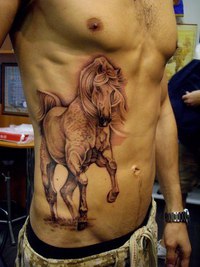 Тату, на котором изображена лошадь, на теле парня обозначает мужское плодородие и власть, а также несокрушимую силу, смелость и благородство. Поэтому мужчины, выбирающие данный вид татуировки, либо имеют все эти качества, либо подсознательно стремятся развивать их в себе.