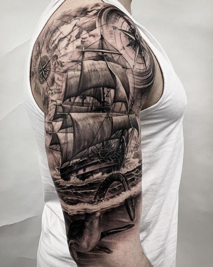 Тату корабль (74 фото) – значение и эскизы с парусами, компасом, маяком