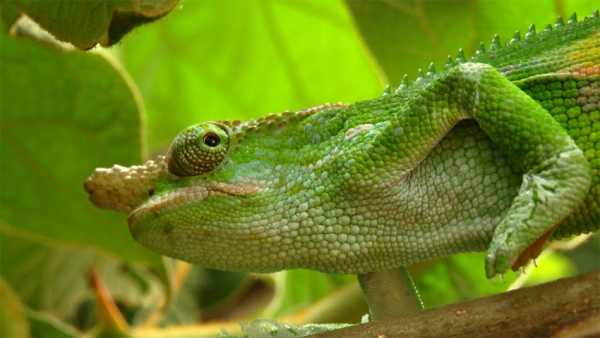 Этот вид домашних ящериц очень красив. У молодых особей тело окрашено в зелено-салатовый цвет. По мере взросления, на нем появляются широкие полоски. Хамелеон известен способностью менять окрас. Есть мнение, что он делает это с целью маскировки. Оно ошибочно. На самом деле, окраска зверя зависит от его настроения и статуса.