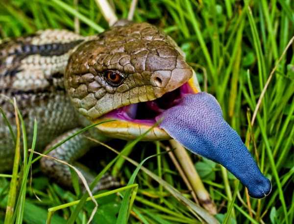 Синеязыковый сцинк – австралийское пресмыкающееся, которого природа наградила длинным языком светло-голубого цвета. Чешуя у него очень гладкая, как у рыбы. Это крупное животное (до 50 см).
