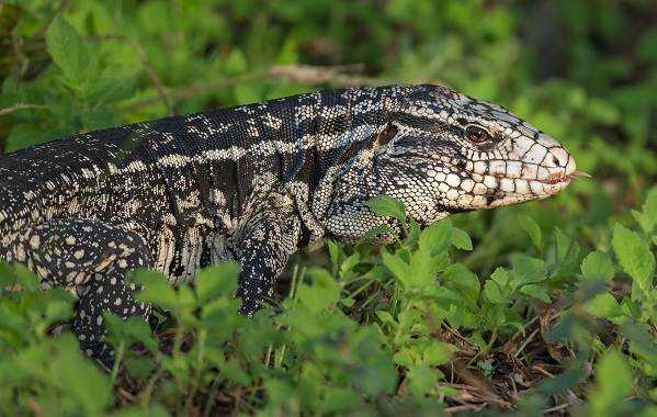 Тегу водится в Южной Америке. Животное отличается внушительными габаритами. При благоприятных условиях, оно может вырасти до 1,3 метра. Эту ящерицу относят к дневным хищникам. Если вы решили содержать черно-белого тегу дома, то, будьте готовы к тому, что вам придется кормить его живыми грызунами, например, мышами.