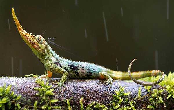 Это достаточно редкий вид пресмыкающегося, который очень похож на маленького игрушечного крокодила. У анолиса имеется длинный нос, по форме напоминающий слоновий хобот. Водится он в эквадорских лесах.