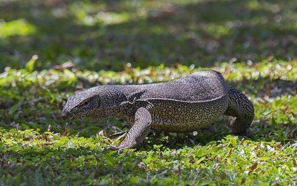 Такой варан намного меньше, чем коморский, до 1,5 метра длиной. Телосложение животного – массивное и стройное. Цвет — серо-оливковый. У некоторых особей данного вида на теле просматриваются светлые пятна. Распространены они в Индонезии, Индии, Пакистане и других странах.