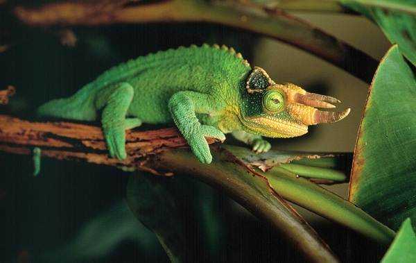 Его ещё называют «ящерицей Джексона». Содержать такого питомца намного легче, чем йеменского хамелеона. Он менее прихотлив в уходе. Это животное, аналогично предыдущему, способно менять окрас, в зависимости от настроения. Если оно не находится в состоянии стресса, то его тело будет светло-зеленым.