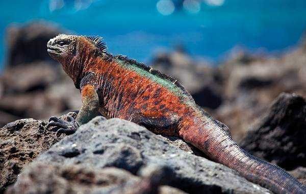 А этот вид пресмыкающихся обитает на Галапагосах. Из названия животного понятно, что оно проводит время, преимущественно, плавая в море. Чтобы погреться на солнце, игуана выходит из воды и залазит на береговой камень. Она быстро высыхает благодаря темному цвету чешуи. Эта крупная ящерица относится к травоядным. Она питается морскими водорослями.