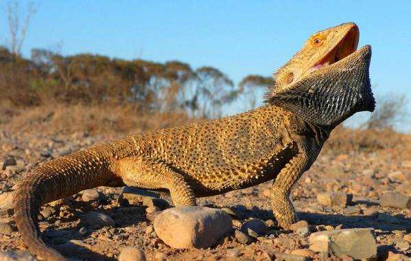 Если вы хотите завести в качестве питомца уменьшенную копию дракона, то остановите свой выбор на плащеносной ящерице. В дикой природе, её избегают даже хищники. Всё дело в большой кожной складке на шее, которая, в случае опасности, надувается, меняя цвет. Чтобы визуально казаться больше, рептилия становится на задние лапы.