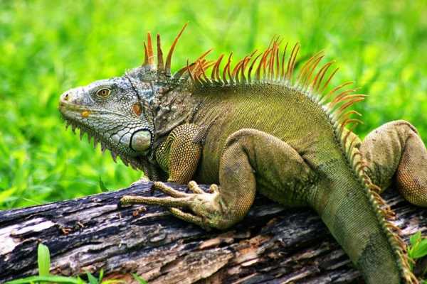 Один из самых красивых видов ящериц. Она крупная, массивная и очень ловкая. Зелёная игуана обитает в Южной и Северной Америке. У некоторых особей на макушке имеются небольшие рога. В дикой природе, эти животные оседают у водоемов, рядом с густыми зарослями.