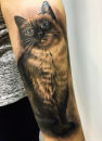 При нанесении этой татуировки уделяется внимание деталям, чтобы татуировка выглядела как кошка, которую она должна изображать.