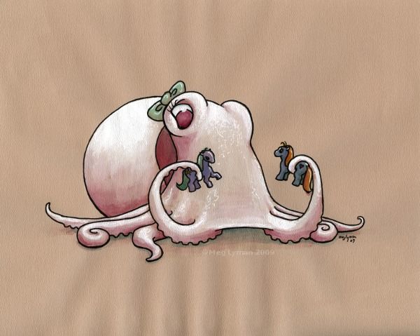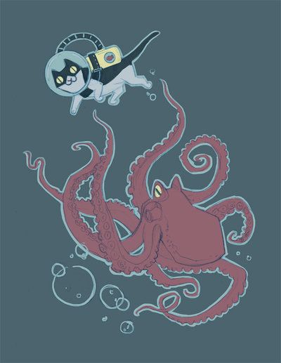 Осьминог и кошка танцуют 11×14 Art Print
